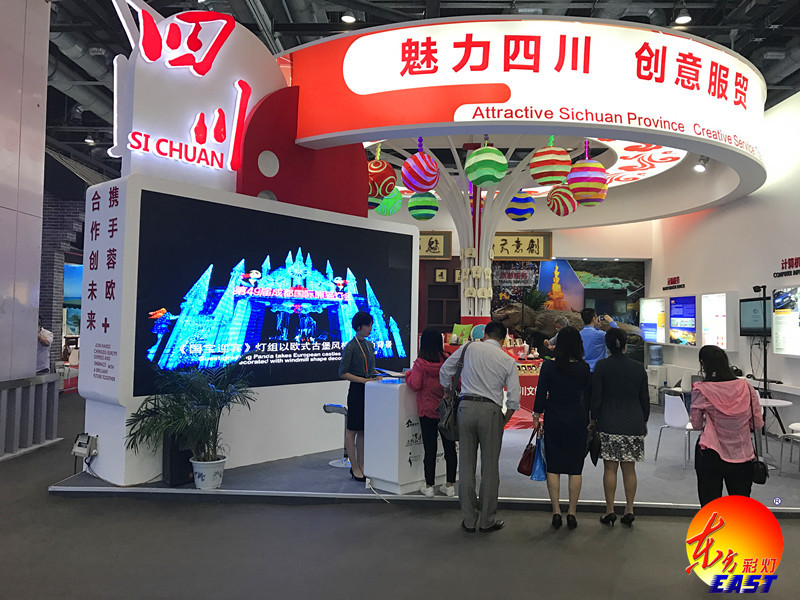 四川展區(qū)文化貿(mào)易“走出去”重點(diǎn)企業(yè)-自貢燈貿(mào)集團(tuán)股份有限公司向客商展現(xiàn)了美國(guó)“休斯頓彩燈夢(mèng)幻嘉年華”、“菲尼克斯東方彩燈——點(diǎn)亮世界”、“第49屆成都國(guó)際熊貓燈會(huì)”的大氣恢弘、美輪美奐。造型逼真,憨態(tài)可掬的燈會(huì)吉祥物“嘟嘟”更是成為展區(qū)亮點(diǎn)。