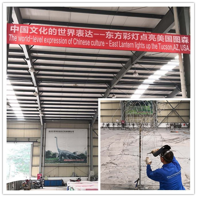 盛夏的八月,驕陽(yáng)似火,東方彩燈出口基地一派繁忙?!皷|方彩燈 點(diǎn)亮世界”系列項(xiàng)目之--美國(guó)圖森“世界之光-彩燈嘉年華”大型燈展燈組國(guó)內(nèi)后期制作正井然有序的進(jìn)行。燈展裝箱發(fā)運(yùn)預(yù)計(jì)于8月中旬完成。