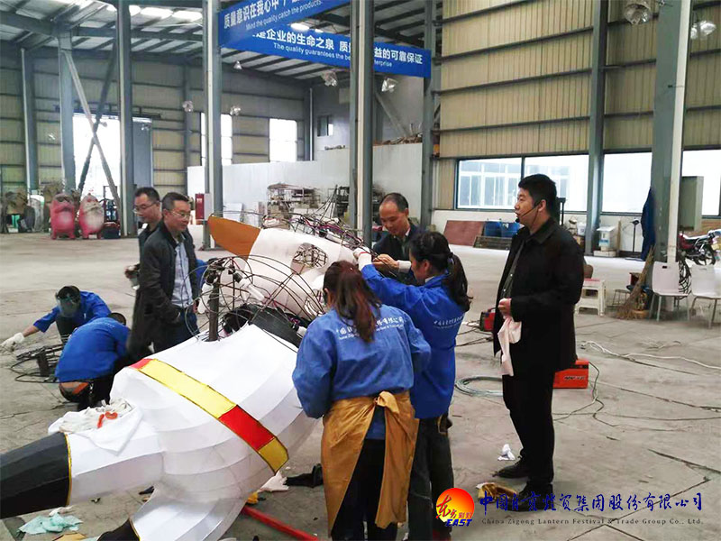 考察領(lǐng)導(dǎo)在“東方彩燈”出口基地制作車間饒有興趣的參觀燈組制作現(xiàn)場。