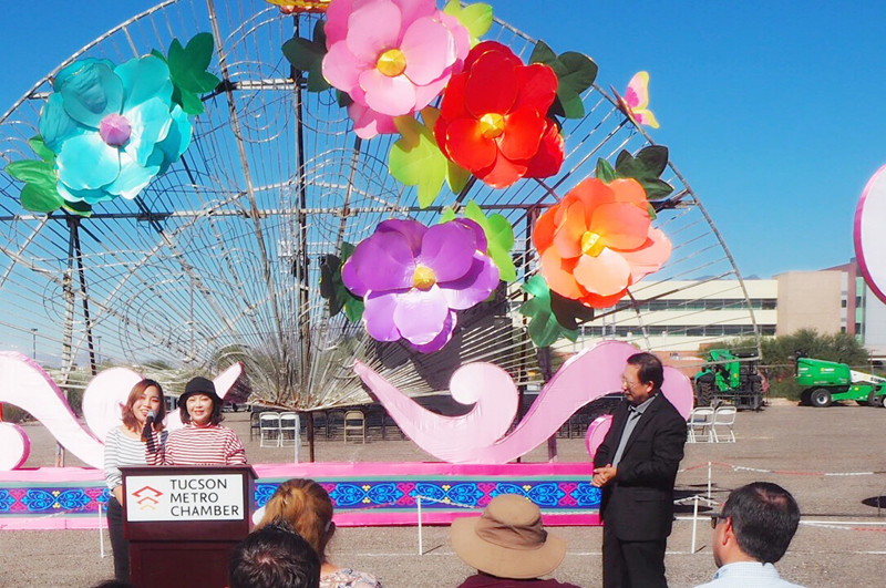 璀璨絢麗、獨(dú)具神韻的“2018世界之光圖森彩燈嘉年華”于11月7日在美國(guó)西部城市圖森華彩綻放。燈展受到當(dāng)?shù)卣蜕鐣?huì)各界的廣泛關(guān)注。Pima郡行政長(zhǎng)官、圖森市常務(wù)副市長(zhǎng)、市議會(huì)議員、郡商會(huì)會(huì)長(zhǎng)、市大都會(huì)商會(huì)董事長(zhǎng)、市旅游局局長(zhǎng)、市交通局局長(zhǎng)等美方官員出席開幕式。