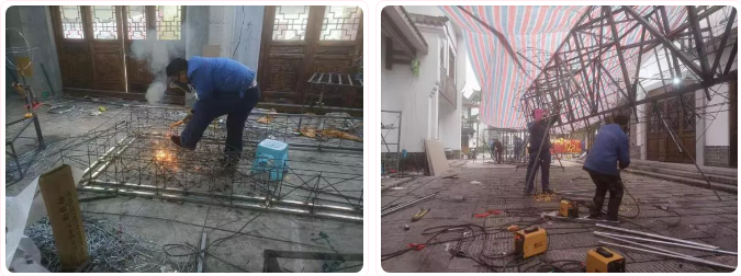 焊接也是一道十分重要的工序,碩大的花燈能夠穩(wěn)當(dāng)立起來,形成立體模樣,全靠焊接做骨架。而這個活計(jì)又十足費(fèi)工夫,在生產(chǎn)現(xiàn)場,焊工班的師傅戴著防護(hù)面罩,手下焊頭處火光四濺。做成一個花燈骨架,焊接點(diǎn)往往多達(dá)數(shù)百上千個。