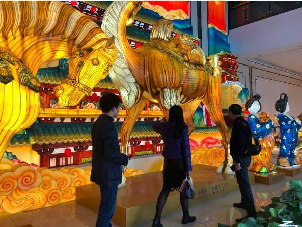 調(diào)研組一行參觀了東方彩燈(出口)基地,觀摩了燈貿(mào)集團(tuán)將自貢彩燈與唐三彩兩種非遺技藝的全新融合的“唐風(fēng)華韻”展品。集團(tuán)執(zhí)行總裁陶建軍向調(diào)研組一行介紹了燈貿(mào)集團(tuán)發(fā)展?fàn)顩r,以及公司全新彩燈產(chǎn)品。公司為促進(jìn)彩燈產(chǎn)業(yè)的創(chuàng)新性轉(zhuǎn)化和創(chuàng)造性發(fā)展,推出了文化+創(chuàng)意+科技全新彩燈產(chǎn)品,產(chǎn)品深度挖掘文化底蘊(yùn)動(dòng)線,變被動(dòng)式觀燈為主動(dòng)式沉浸、行浸觀燈,燈展的供給創(chuàng)新能力和消費(fèi)場景獲客能力得到了較大的提升。